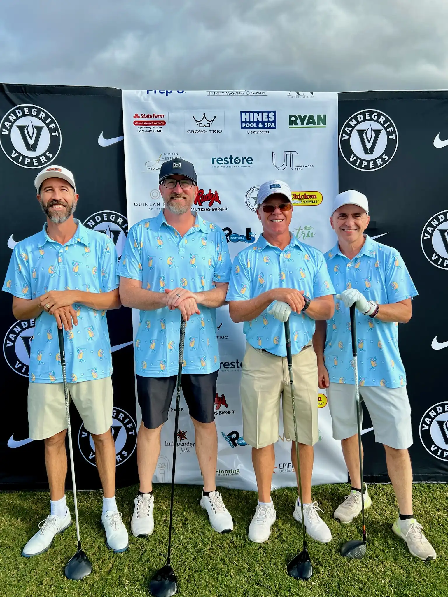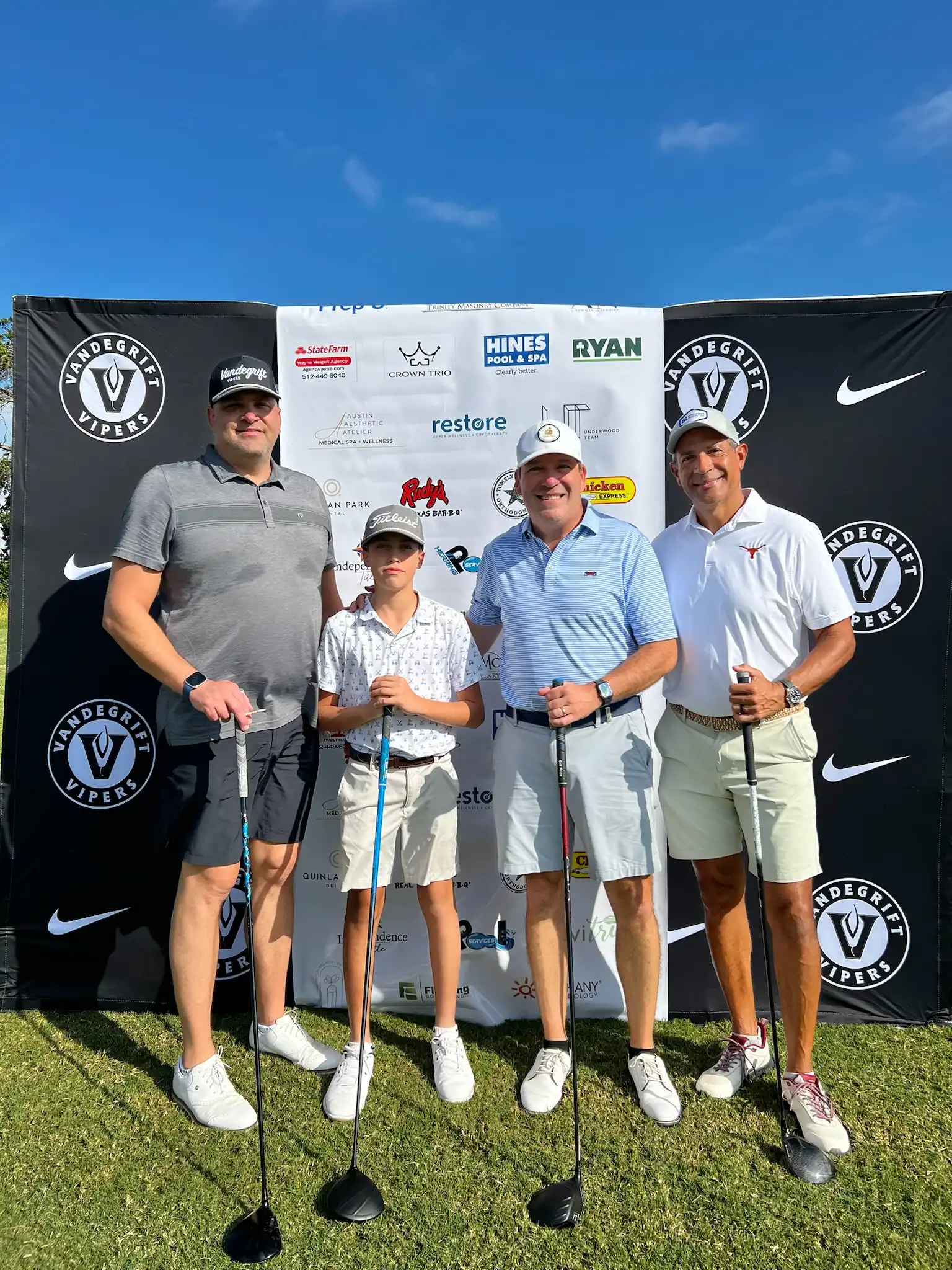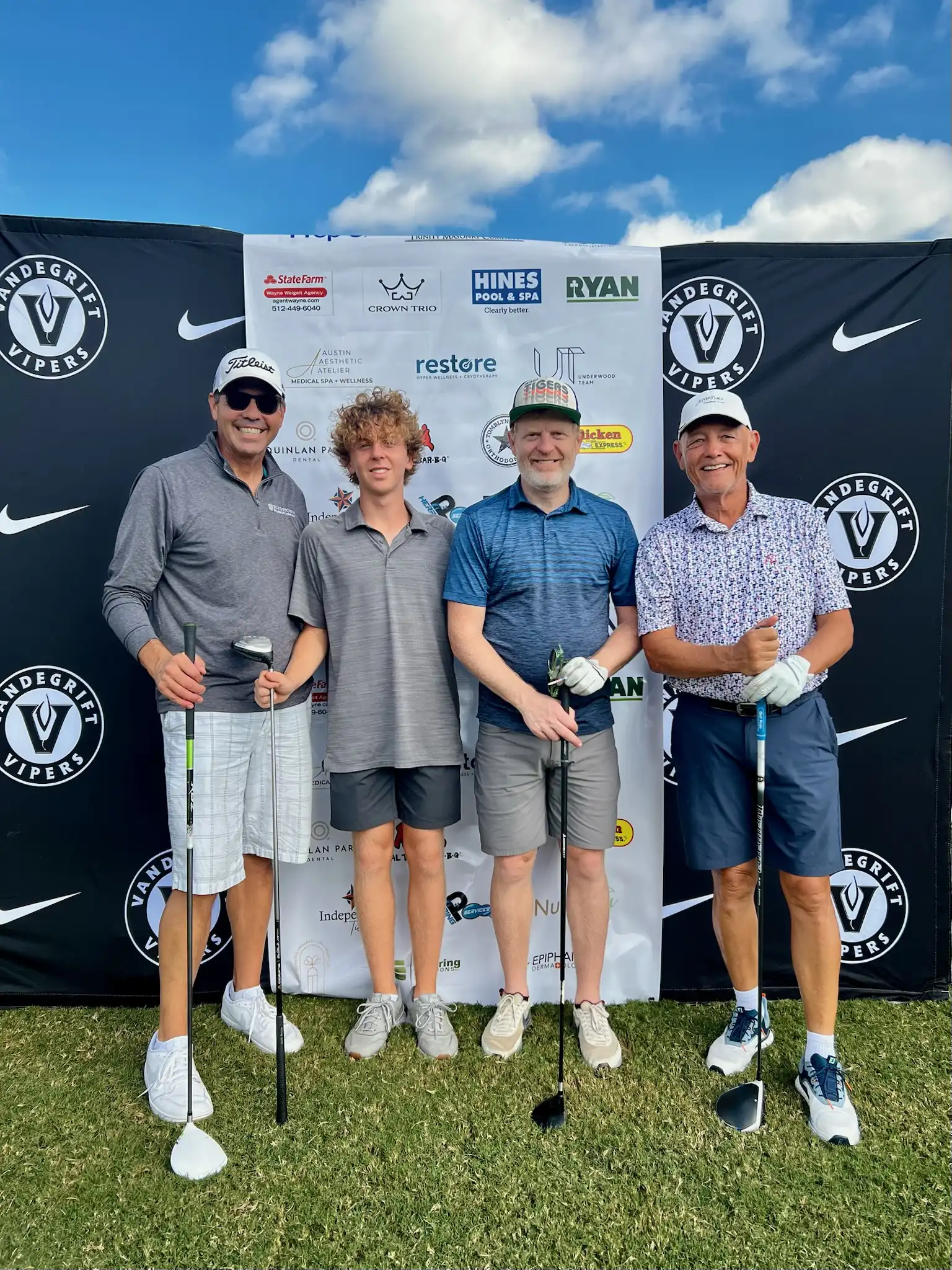 The Underwood Team was proud to once again sponsor and play in the Vandegrift High School Boys Basketball Team’s Annual Golf Tournament on October 20, 2025, at Falconhead Golf Course. It was a gorgeous, sunny, and breezy day — the perfect backdrop for a fun-filled community event supporting a fantastic cause!