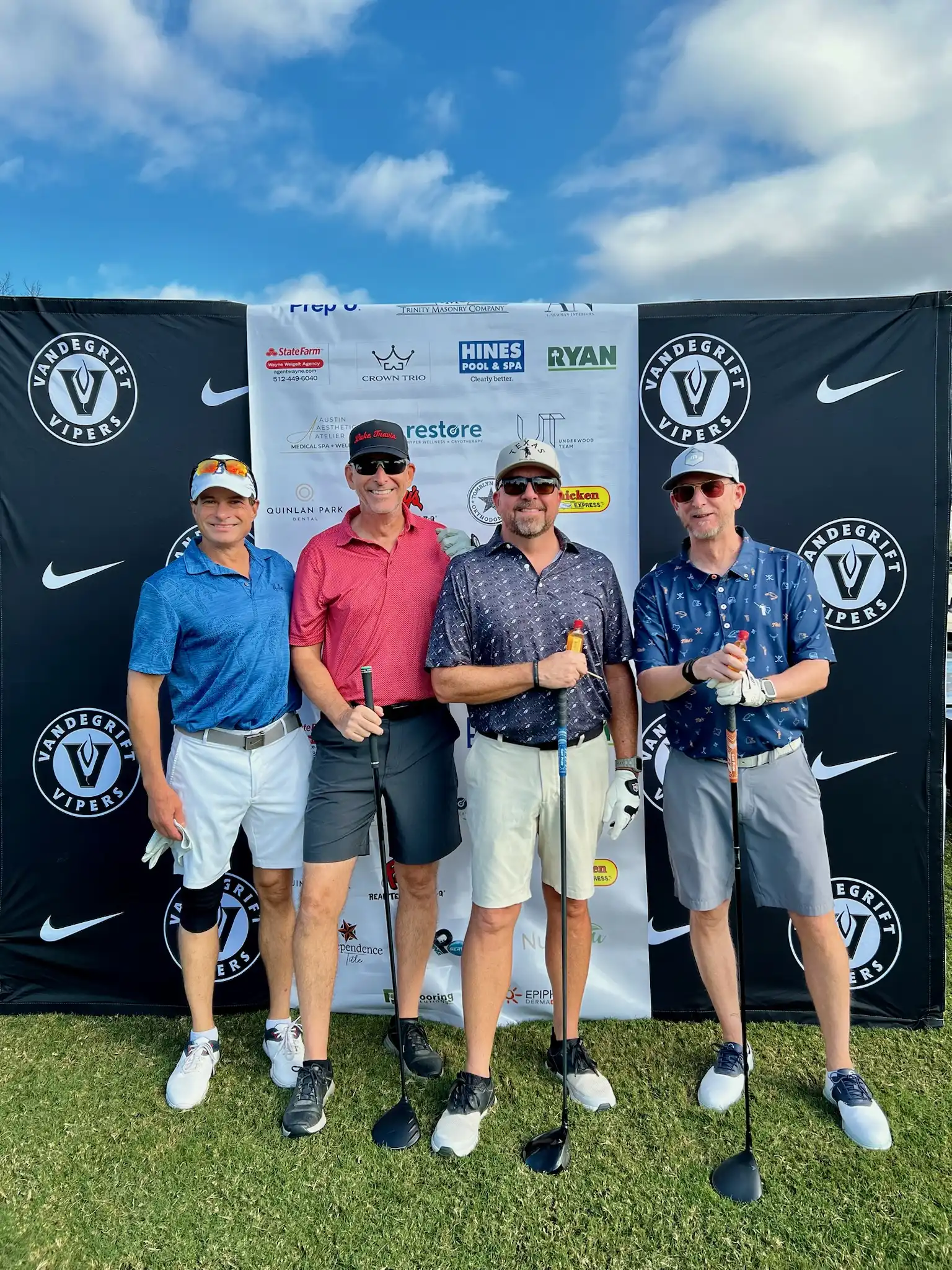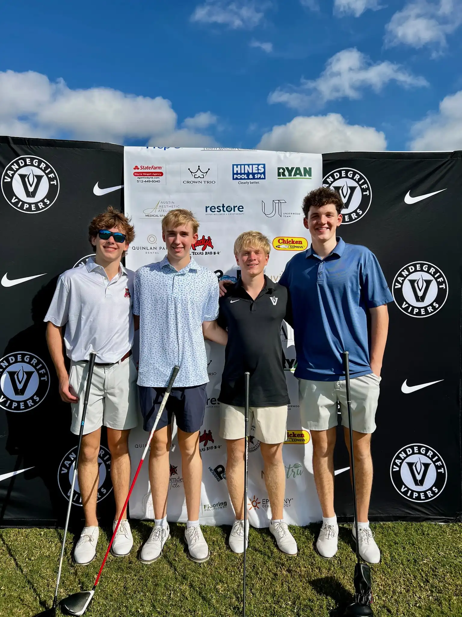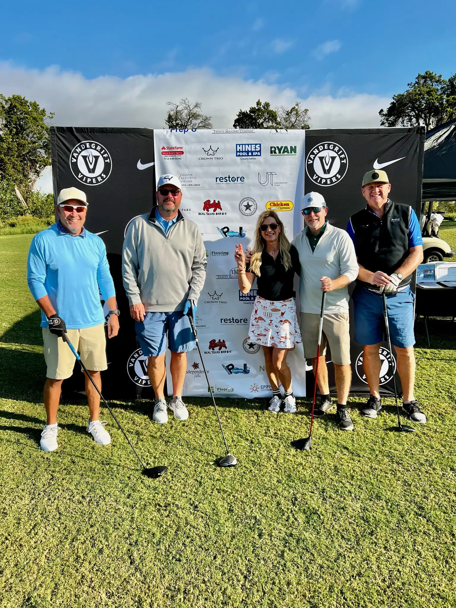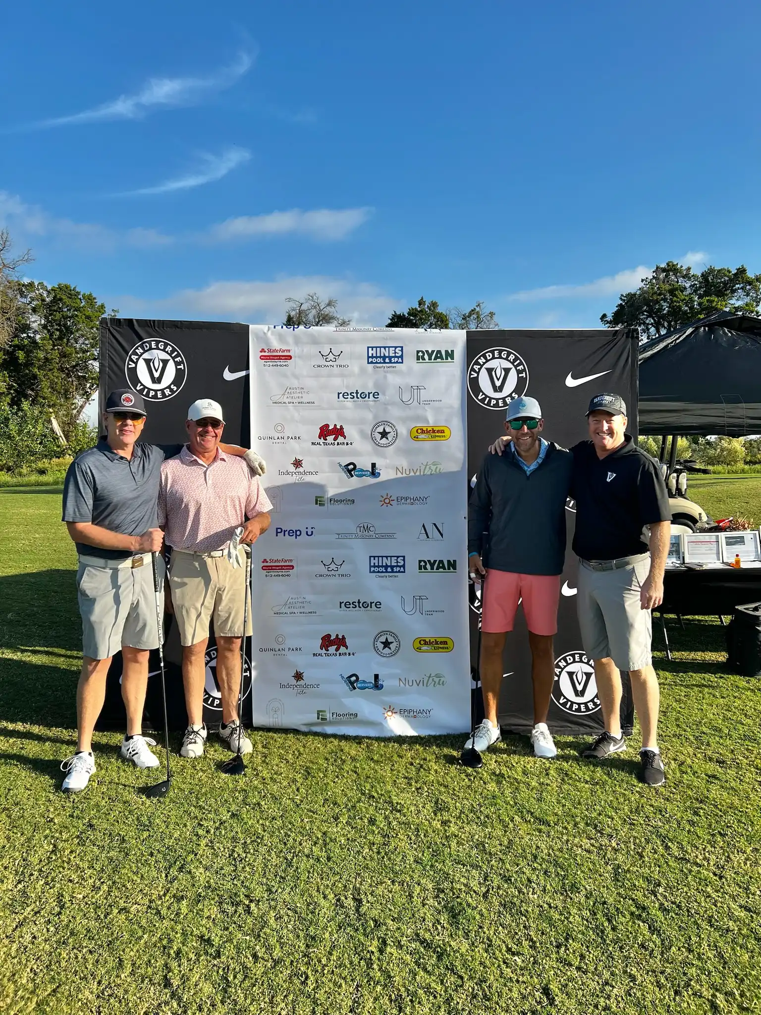 The Underwood Team was proud to once again sponsor and play in the Vandegrift High School Boys Basketball Team’s Annual Golf Tournament on October 20, 2025, at Falconhead Golf Course. It was a gorgeous, sunny, and breezy day — the perfect backdrop for a fun-filled community event supporting a fantastic cause!